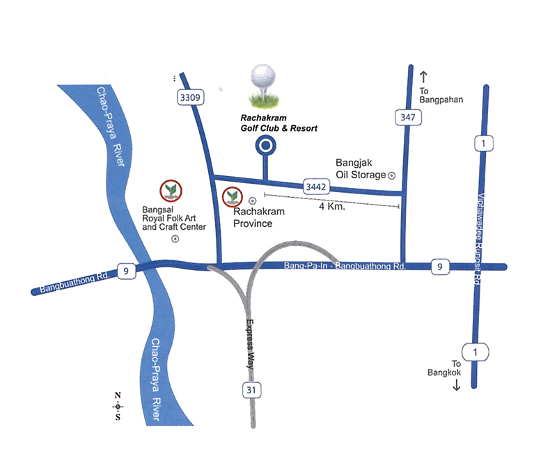 1번 고속도로를 타고가다 방파인 - 방푸어텅 로드가 나오는 9번 도로로 진입, 347번 도로와 만나면 우회전후 3432번 도로로 진입후 약 4km 정도만 진행하면 오른쪽으로 골프장 입구가 나온다.