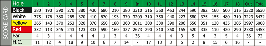 공략팁 : 페어웨이 양 옆으로 울창한 숲이 우거져 있다. 직선으로 워터 해저드의 두려움을 극복하고 홀 50야드 앞쪽까지 티샷을 날릴 수 있다면 2온은 아주 쉽게 할 수 있을 것이다. 넓은 그린은 비교적 쉬운 퍼팅이 가능하다. 스코어를 줄이고 싶다면 모험을 해보는 것도 나쁘지 않다.