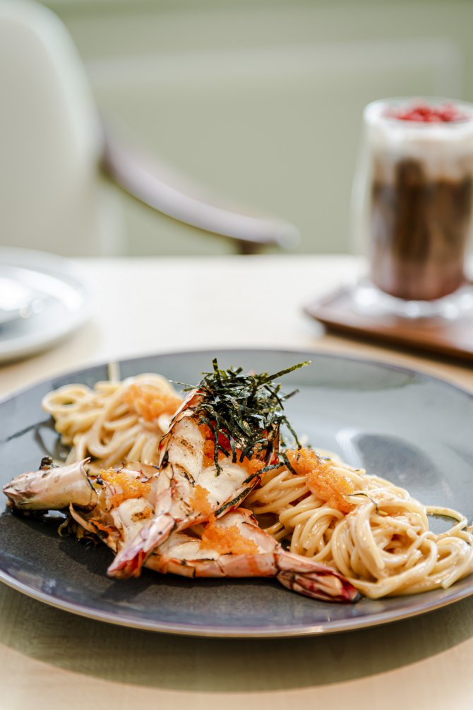 Spaghetti Ebiko with Tiger Prawns 360.-