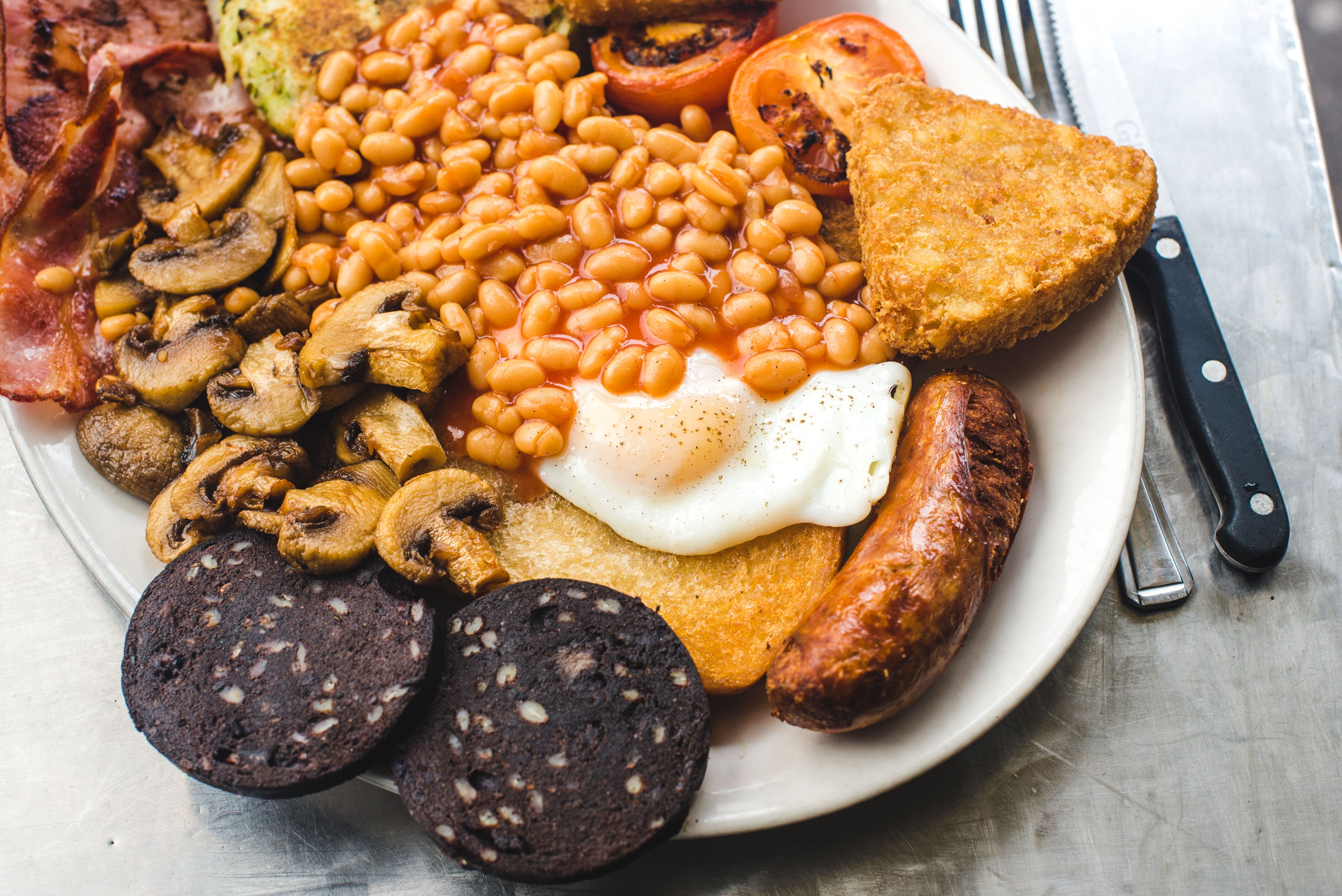 Full English Breakfast는 일반적으로 베이컨, 소시지, 계란, 콩, 구운 토마토, 버섯이 포함된 실질적인 식사입니다. 하루종일 배부르게 만들어주는 든든한 식사입니다. 런던에서 영국식 아침 정식을 맛보기에 가장 좋은 곳은 The Breakfast Club, Regency Cafe, Dishoom입니다.