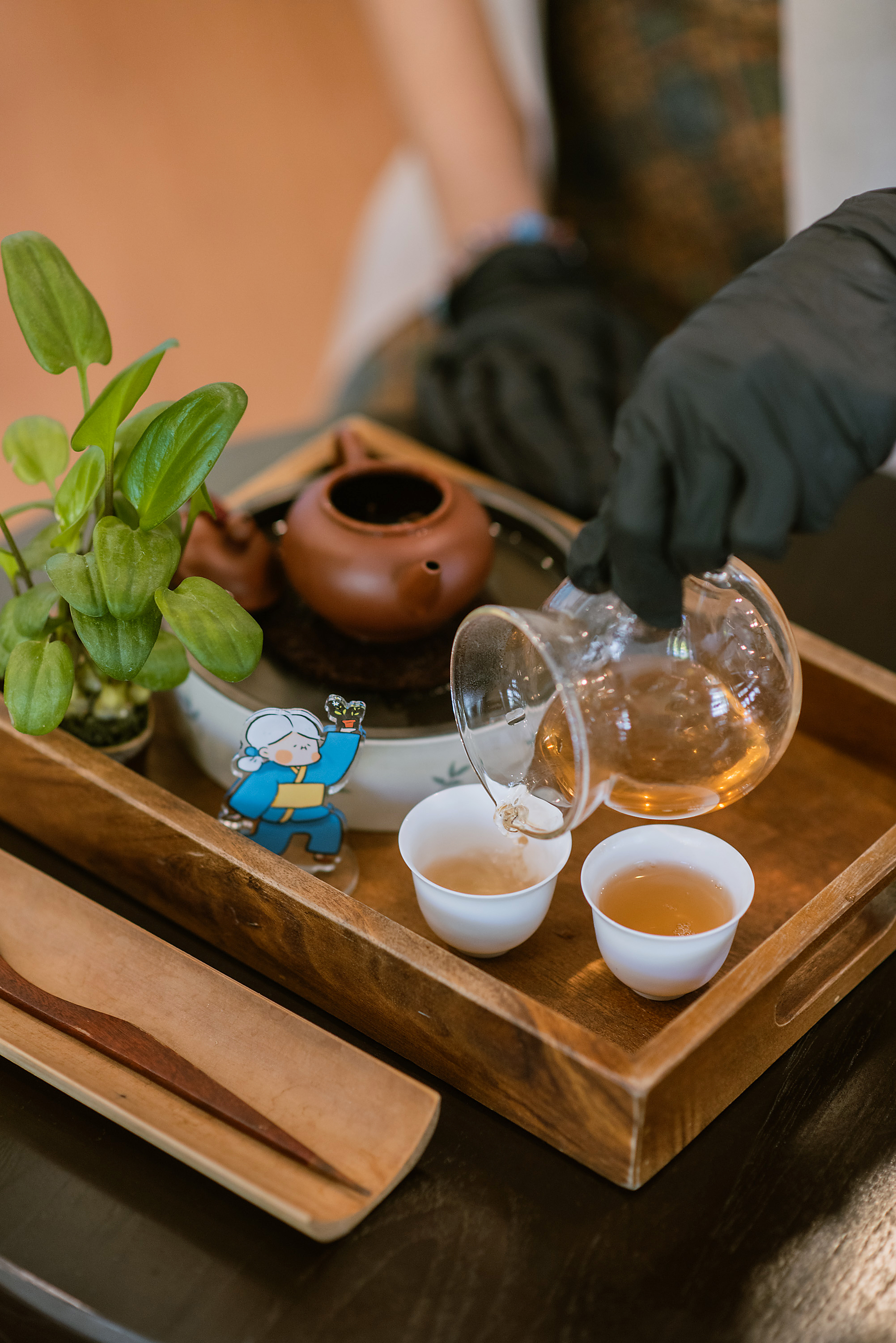 Gimbocha의 차 메뉴는 싱글 및 하우스 블렌드 스타일로 제공되며, 모든 차는 접근하기 쉬운 방식으로 정성스럽게 제공됩니다. 특히, '할머니의 8가지 꽃'이라는 시그니처 음료는 꿀과 스테비아로 단맛을 더한 자체 블렌딩 차로, 맑고 차가운 차로 제공되어 더운 오후에 적합합니다. 또한 전통적인 중국 차인 롱징 그린 티는 전통적인 방식으로 우려내어 중국 차의 향을 느낄 수 있으며, 모든 디저트 메뉴와 잘 어울립니다.