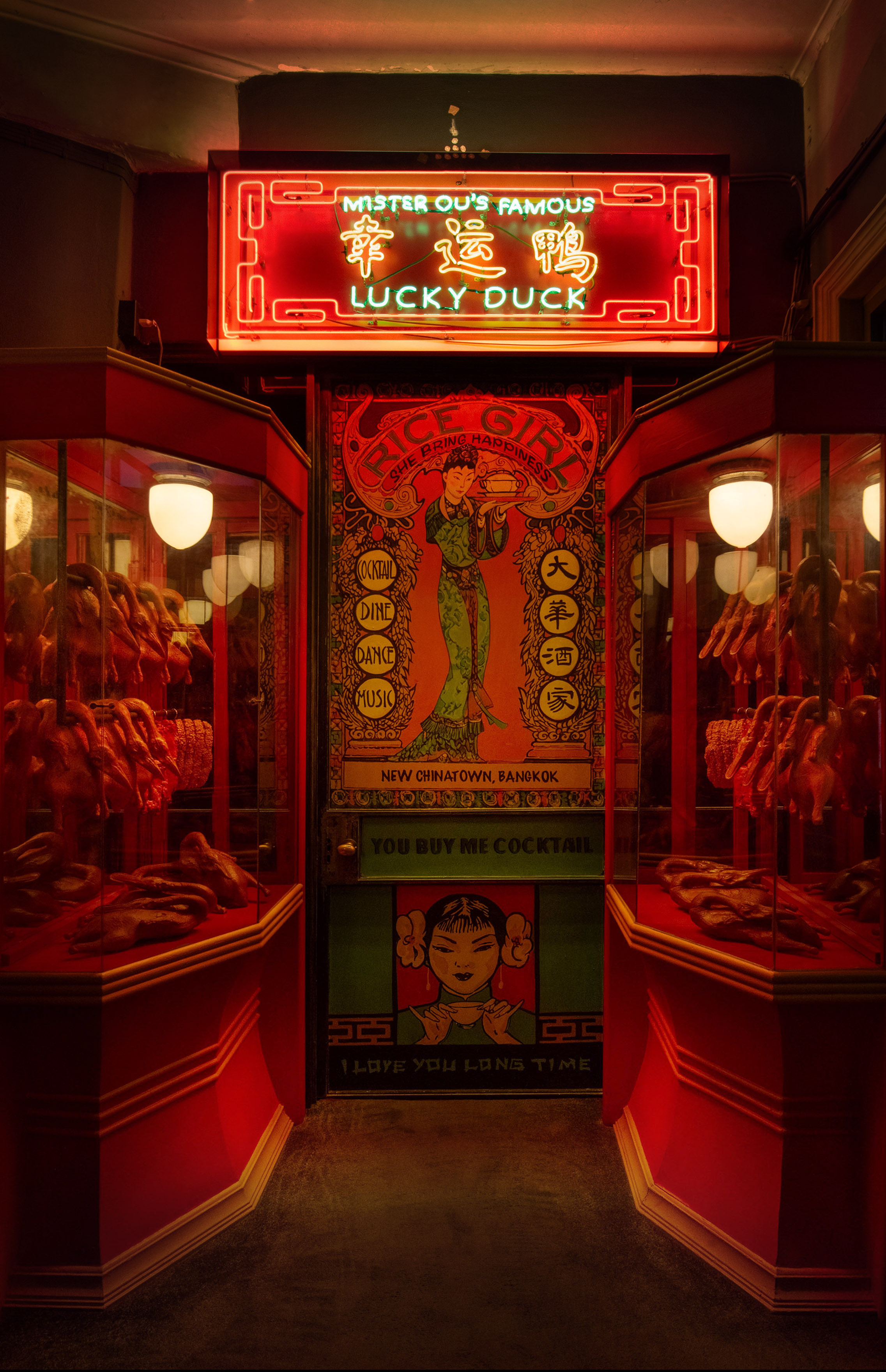 Lucky Duck은 방콕 차이나타운 지역에 새롭게 문을 연 비밀 바로, Contento 레스토랑의 3층에 숨겨져 있습니다. Khun U-Noppadol Phahonyothin이 운영하는 이 곳은 "Speakeasy Shanghai Meets Prohibition Hollywood"라는 컨셉트로, 상하이 스타일의 비밀 바와 할리우드 금주법 시대의 분위기를 결합한 독특한 경험을 제공합니다.
