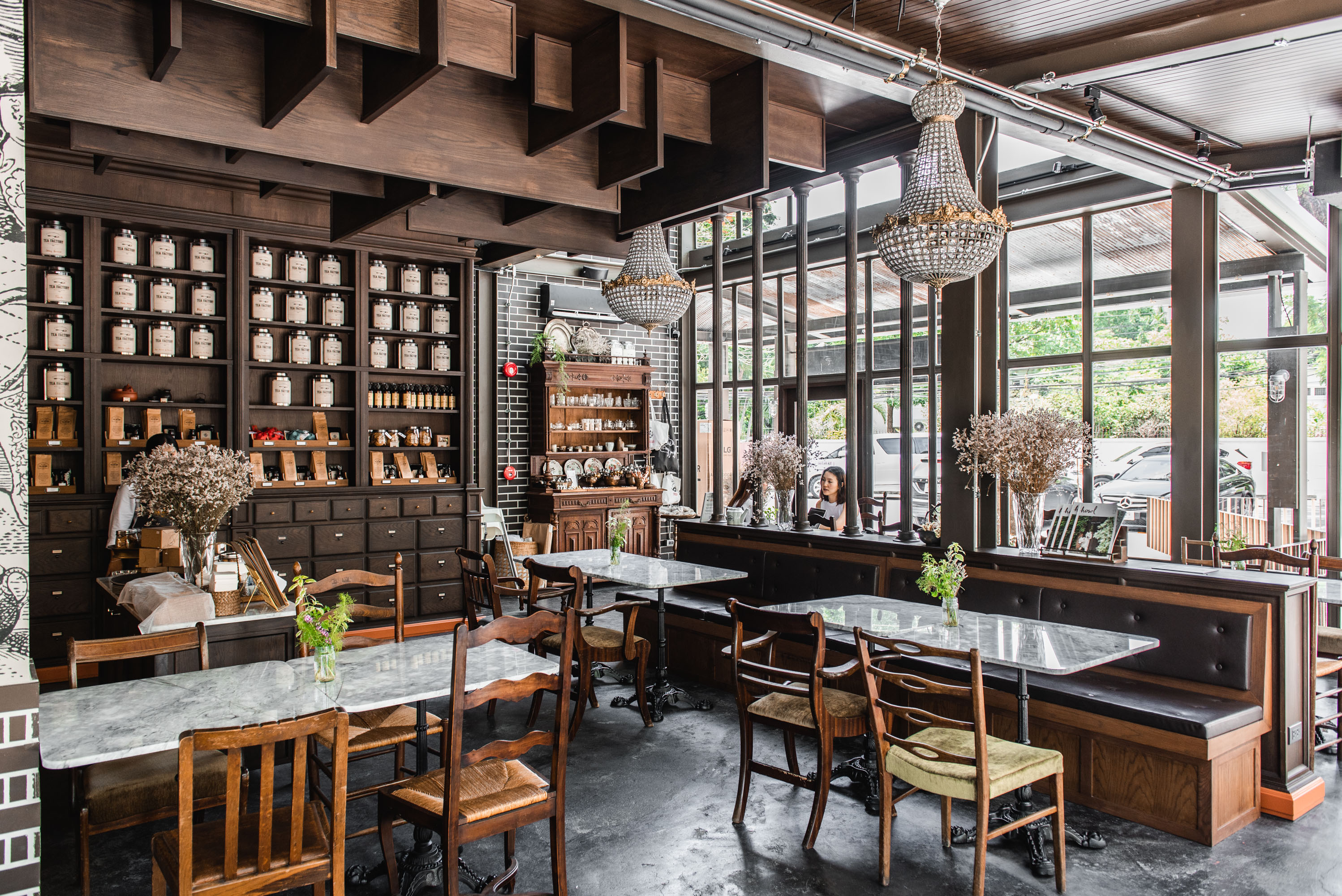 'Tea Factory and More'는 유럽식 온실 분위기를 자아내며, 주변에 심어진 나무와 채소밭이 식당 주변의 원료로 사용됩니다. 이러한 환경은 도심 한가운데에서 찾기 어려운 그늘진 그리고 조용한 분위기를 제공합니다.