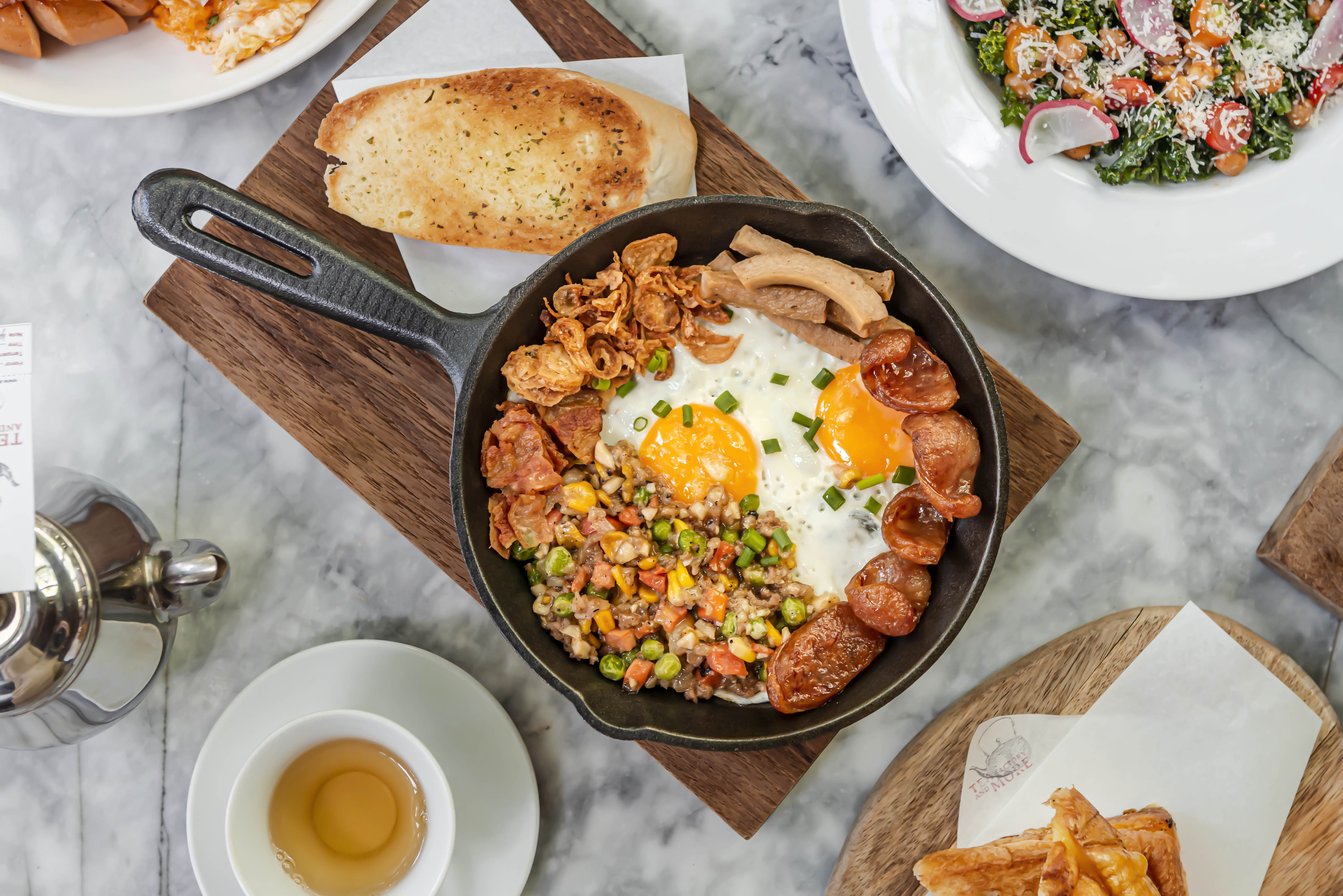 - Tea Factory All Day BF (350바트): 스크램블 에그, 스모크 소시지, 베이컨 등 다양한 사이드가 함께 제공되는 시그니처 메뉴입니다.