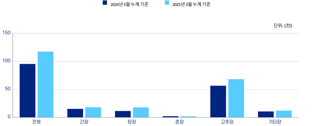 🟠 춘장은 예외: 수출액 ↓24.0% / 수출 중량 ↑17.8%