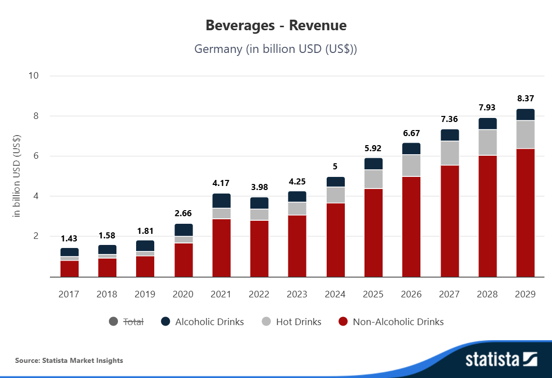 2024년 독일 탄산음료 시장은 62억 달러 규모로 성장 중이며, 건강지향·지속가능성·로컬 감성을 중시하는 소비 트렌드가 두드러지고 있습니다. K-음료의 진출 전략을 소개합니다.