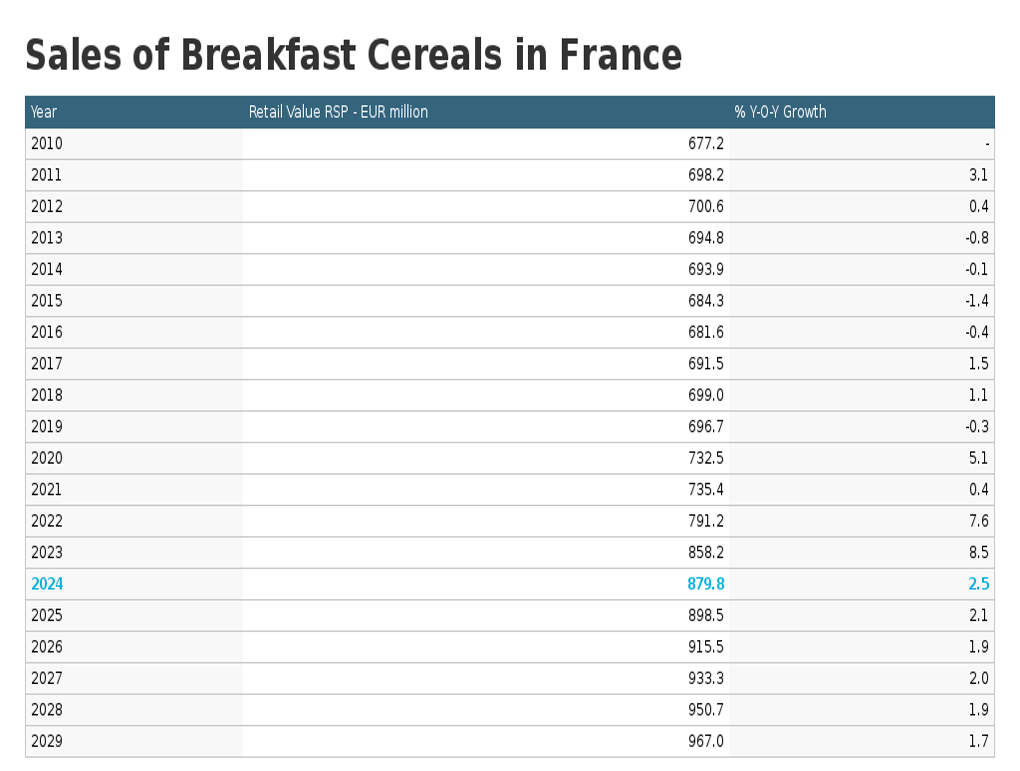 프랑스는 오랜 기간 아침 식사용 시리얼 소비가 활발했던 국가입니다. 2010년대 중반까지는 시장 정체기가 있었으나, 2020년 팬데믹 이후 시장이 재성장세를 보이기 시작했습니다.